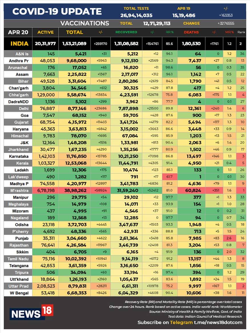 >> દરેક રાજ્ય અને કેન્દ્ર શાસિત પ્રદેશમાં એક્ટિવ કેસની સંખ્યામાં વધારો નોંધાયો છે.